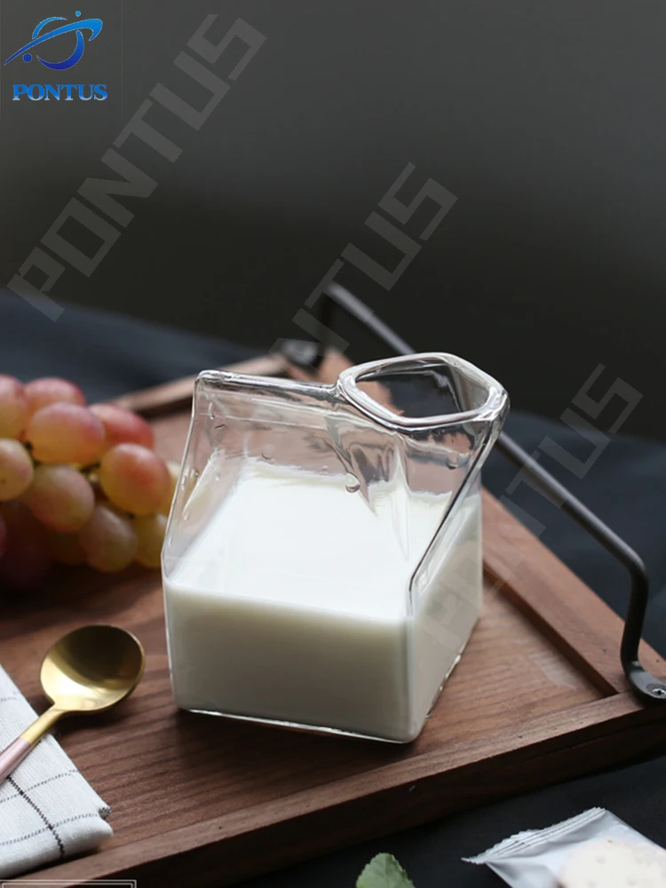 250 мл стеклянная квадратная чашка для молока, кавайные кружки для питья чая и кофе, термостойкая мультяшная бутылка для воды, прозрачные чаш...