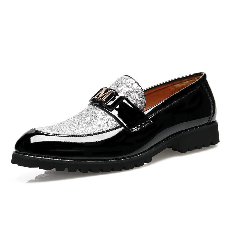 2559 Мокасины с острым носком мужские туфли новые кожаные туфли мужские туфли модные большие размеры импортные товары маленькие кожаные туфли мужские 39 серебряный