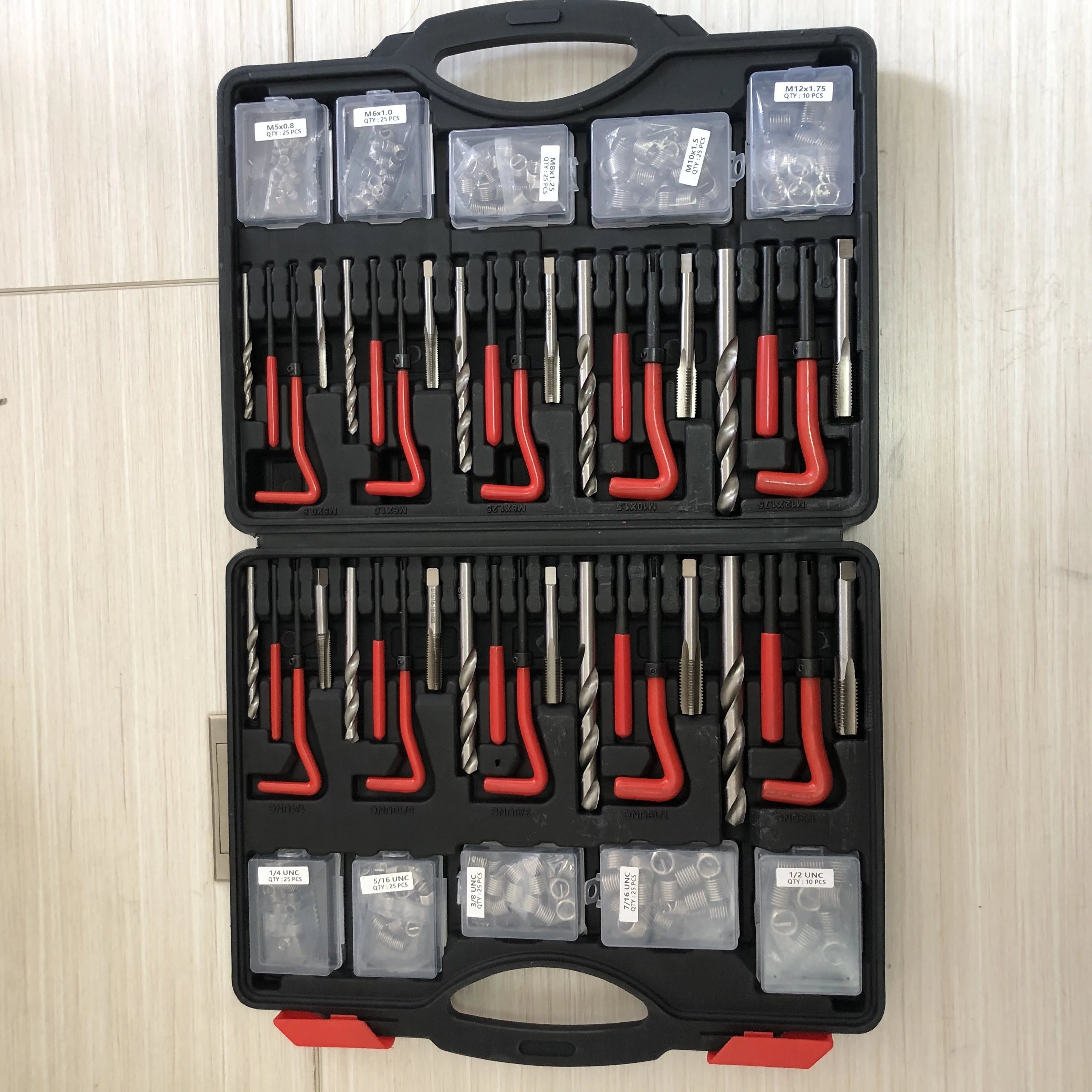 261Pc Thread Repair Kit SAE & Metric Rethreading Tool Set with HSS Drill Bits Thread Inserts Breakoff And Installation Tools