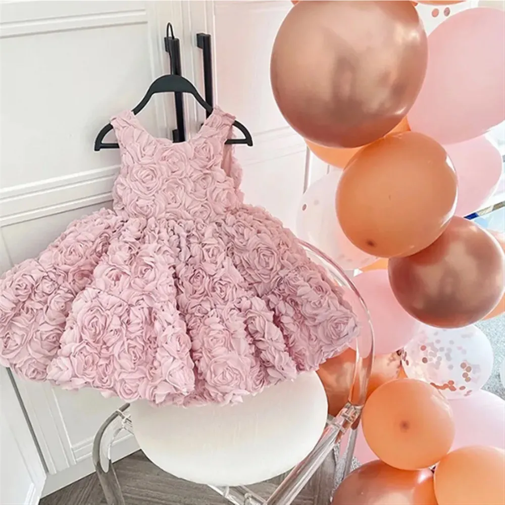 Elegant Flower Girl Baby Wedding Dress Sleeveless Floral Cake Skirt Princess Holiday Birthday Party Prom Kids Tutu Ball Gown