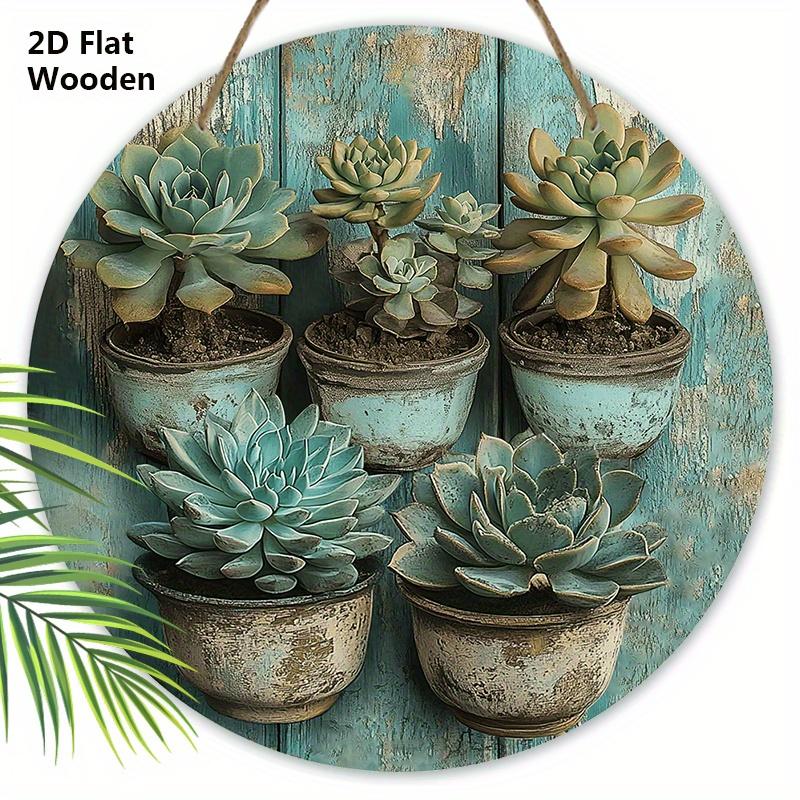 2D Плоская Деревянная Табличка с Узором из Суккулентов - Очаровательная Декоративная Табличка для Дома, Офиса, Двора, Декора Веранды 20cm/7.87in зелёный