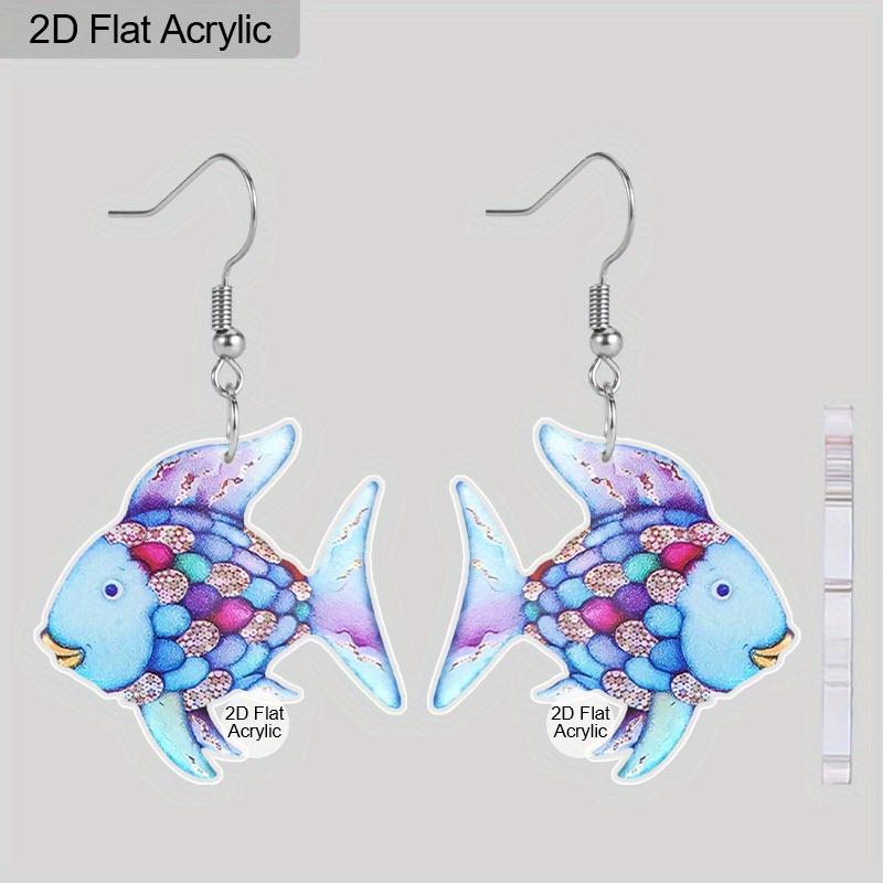 2D Плоские серьги «Радужная рыбка» Акриловые серьги-подвески «Радужная рыбка», «Кит», «Русалка» Серьги для учителей, Ювелирные изделия к началу учебного года