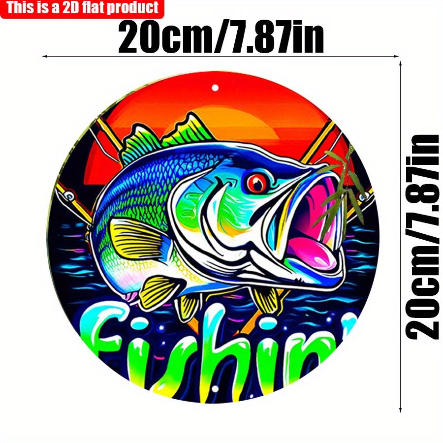 2D Flat 20*20 см 1 шт. Рыболовная тема, яркая, красочная, большая рыба с открытым ртом, круглая, деревянная табличка, настенная в стиле богемной рыбацкой деревни 20*20cm