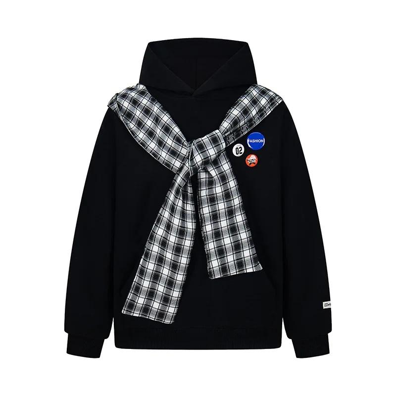 2KWEIRD Американская клетчатая шаль Худи из двух частей с имитацией Женская Ранняя осень Новая Свободная Ленивая Шик Уличная Куртка для пары Хлопок Длинный рукав XL чёрный