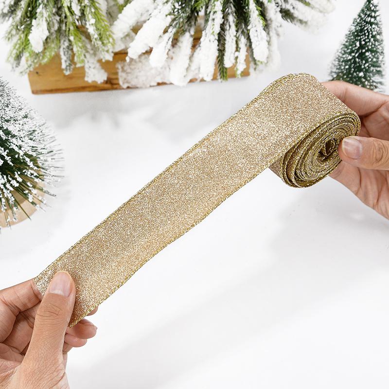 2M Рождественская лента Золотая Серебряная полиэстеровая блестящая лента DIY Рождественская елка бант украшения детские подарки упаковка Navidad домашнее украшение 2Mx3.8cm