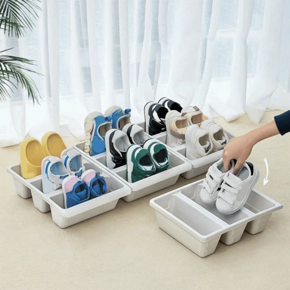 2PCS Modern Plastic 3 Grid Shoe Rack Large Nordic Style Oblique Plug-In Shoe Storage Rack Space Saving Integrated Shoe Box Home