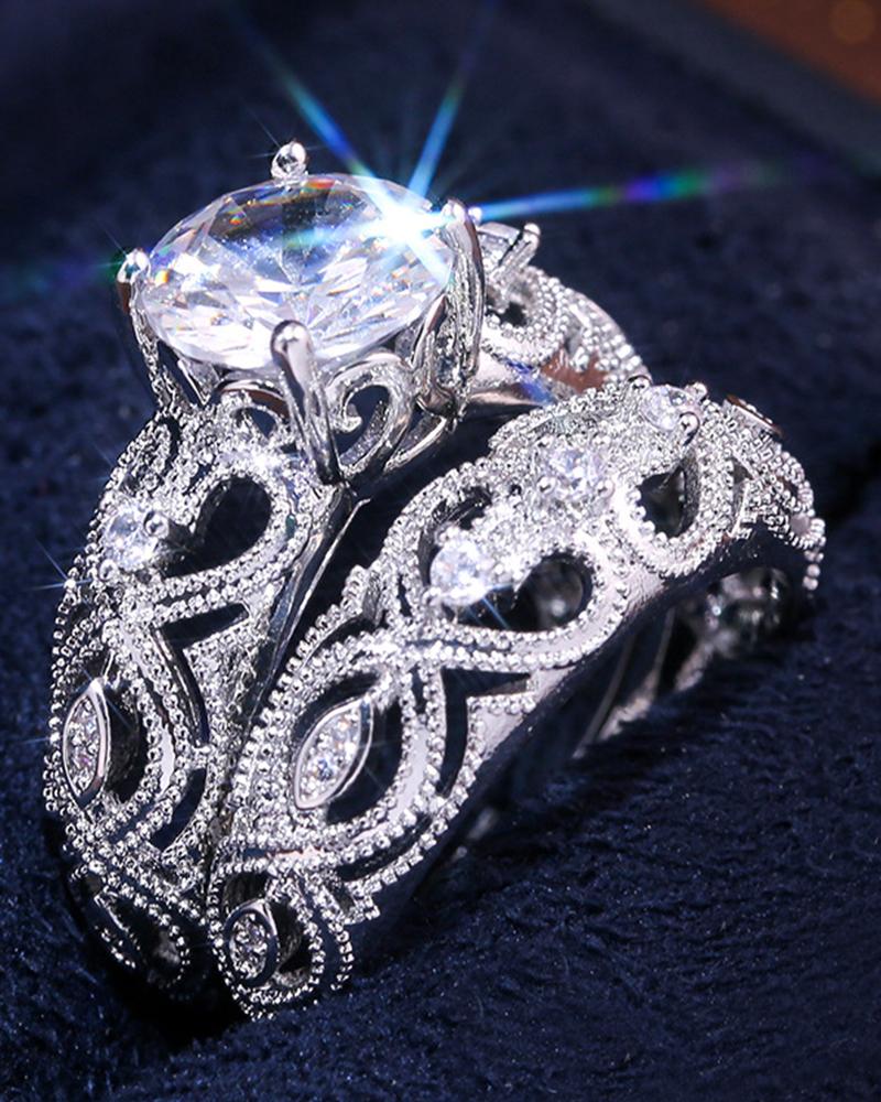 2PCS/Set Square Crystal Stone Hollow Out Wedding Couple Rings, Silver
