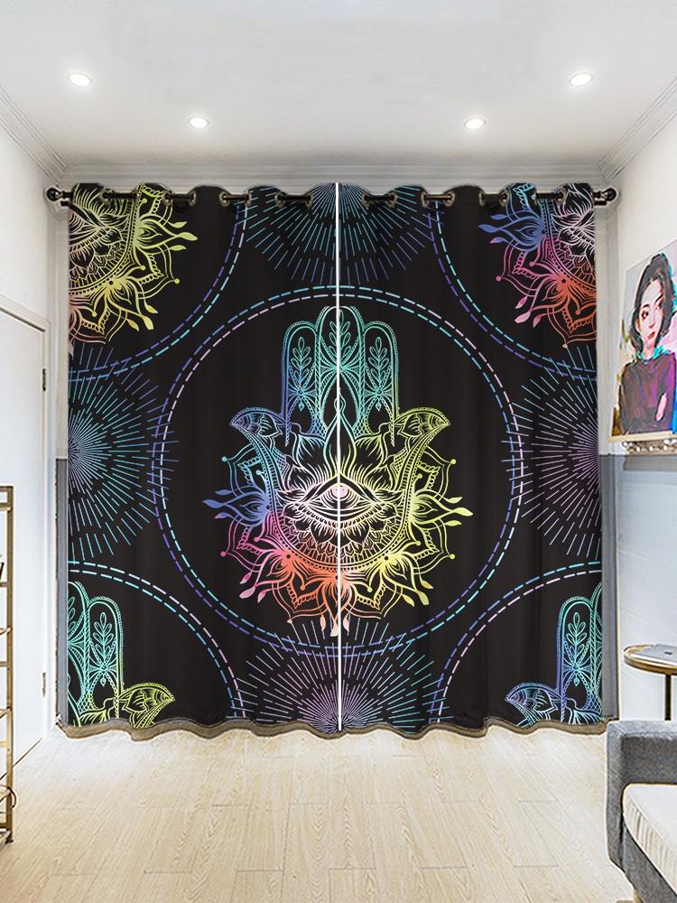 2Panels полузатемняющие шторы Бохо-стиль Шторы Фатима Ручная роспись Спальня Гостиная Кухня Крючок Люверс Верхние шторы 2x50W100H(CM)&hook