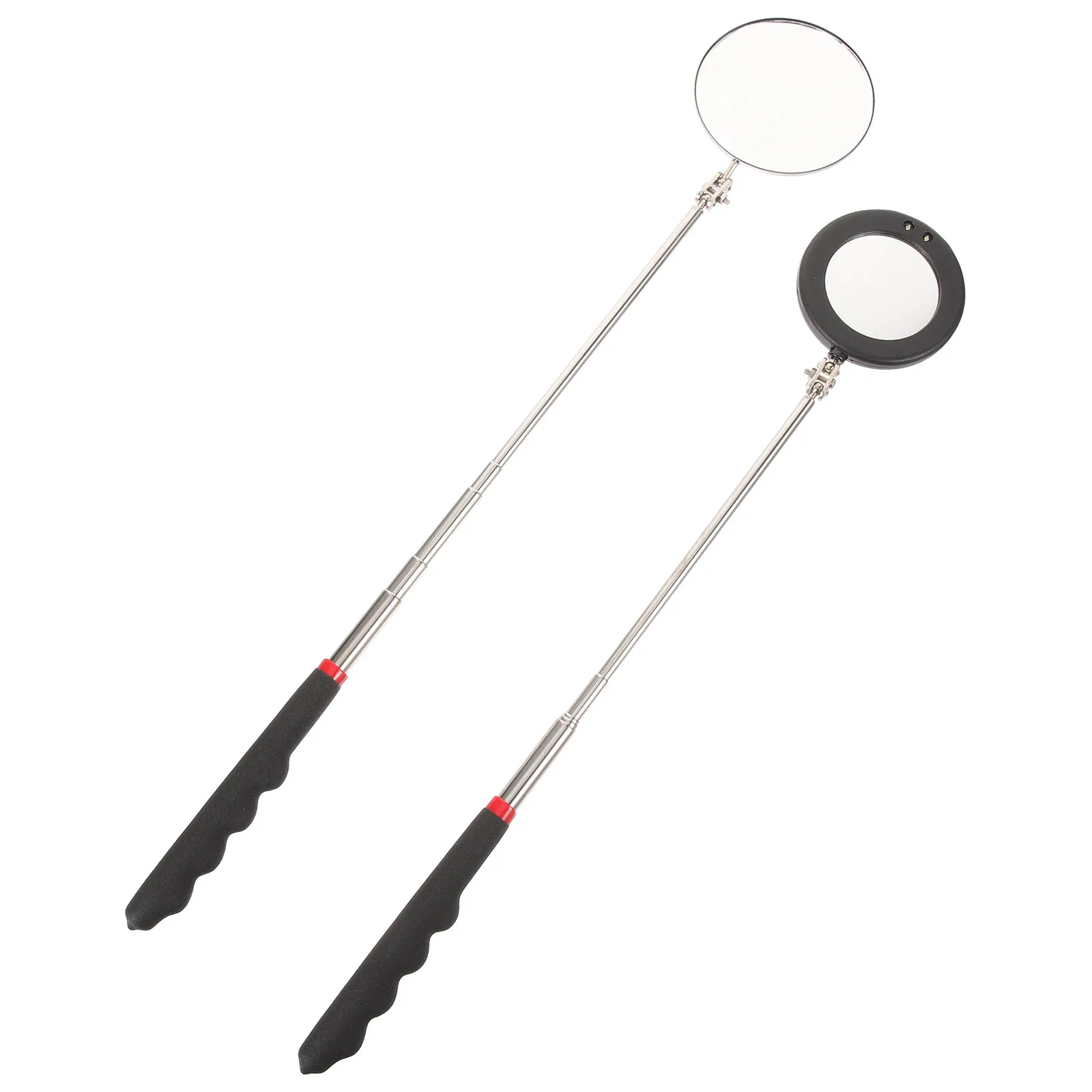 2Pcs Auto Telescoping Inspection Mirror Flexible Adjustable LED Light Extendable Car Bottom Mechanic Inspection Tool Vehicle
