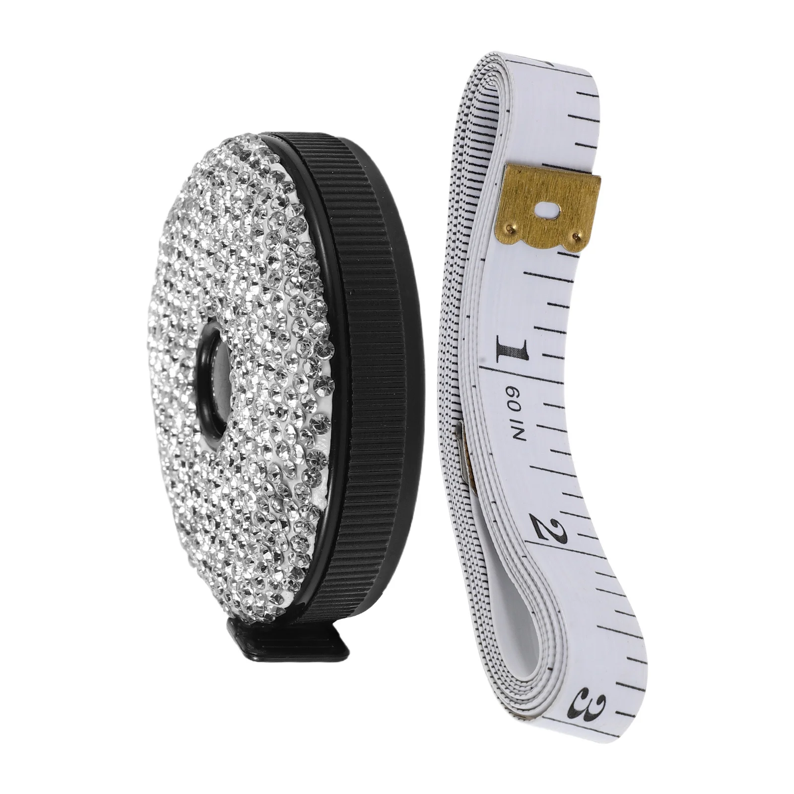 2Pcs Mini Retractable Tape Measure Dual Scale Rhinestone Soft Fabric Tailor Sewing Body Waist Knitting Measuring Tape Portable