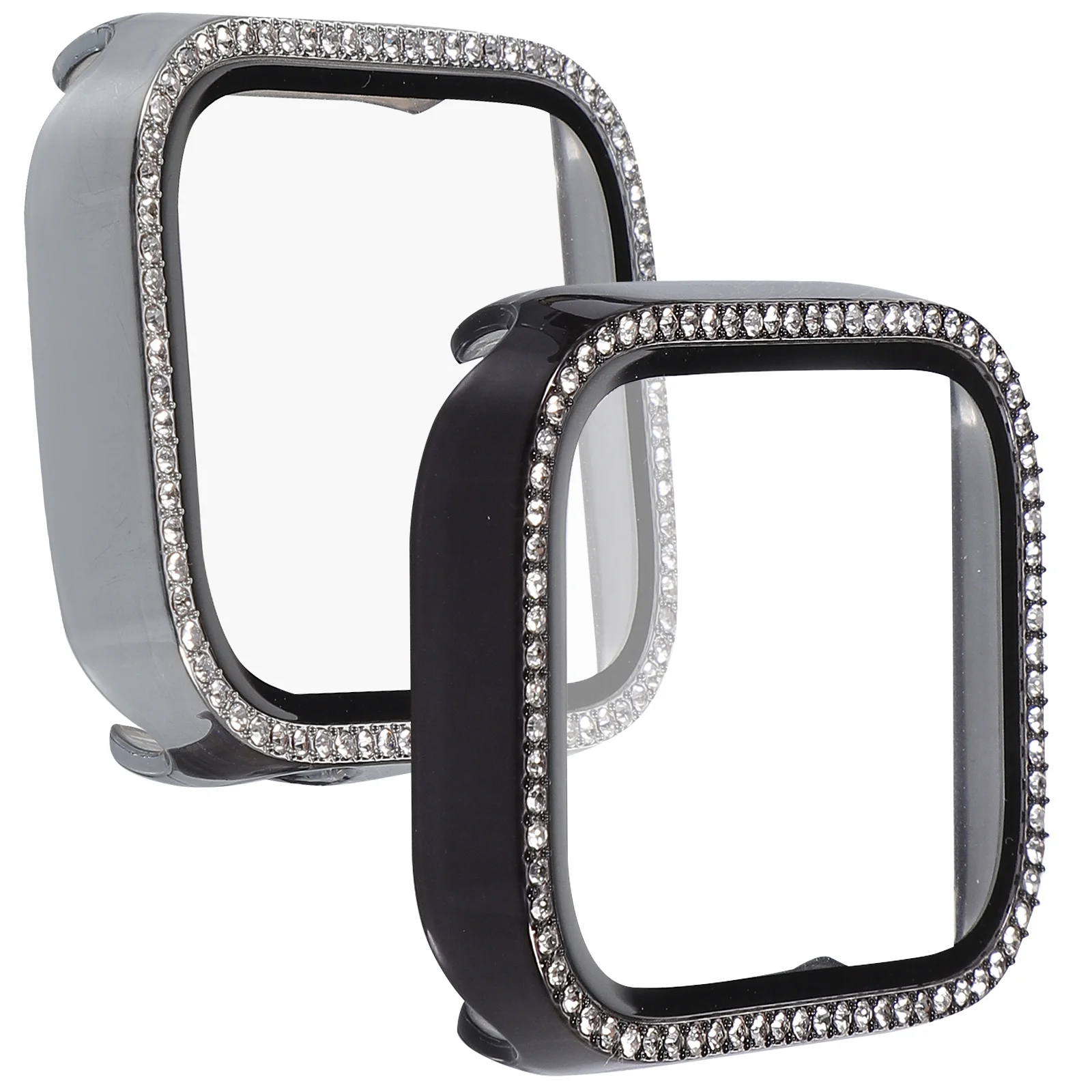 2Pcs Rhinestone Protective Case Smartwatch Screen Protector Decorative Scratch Proof Cover Watch Cover