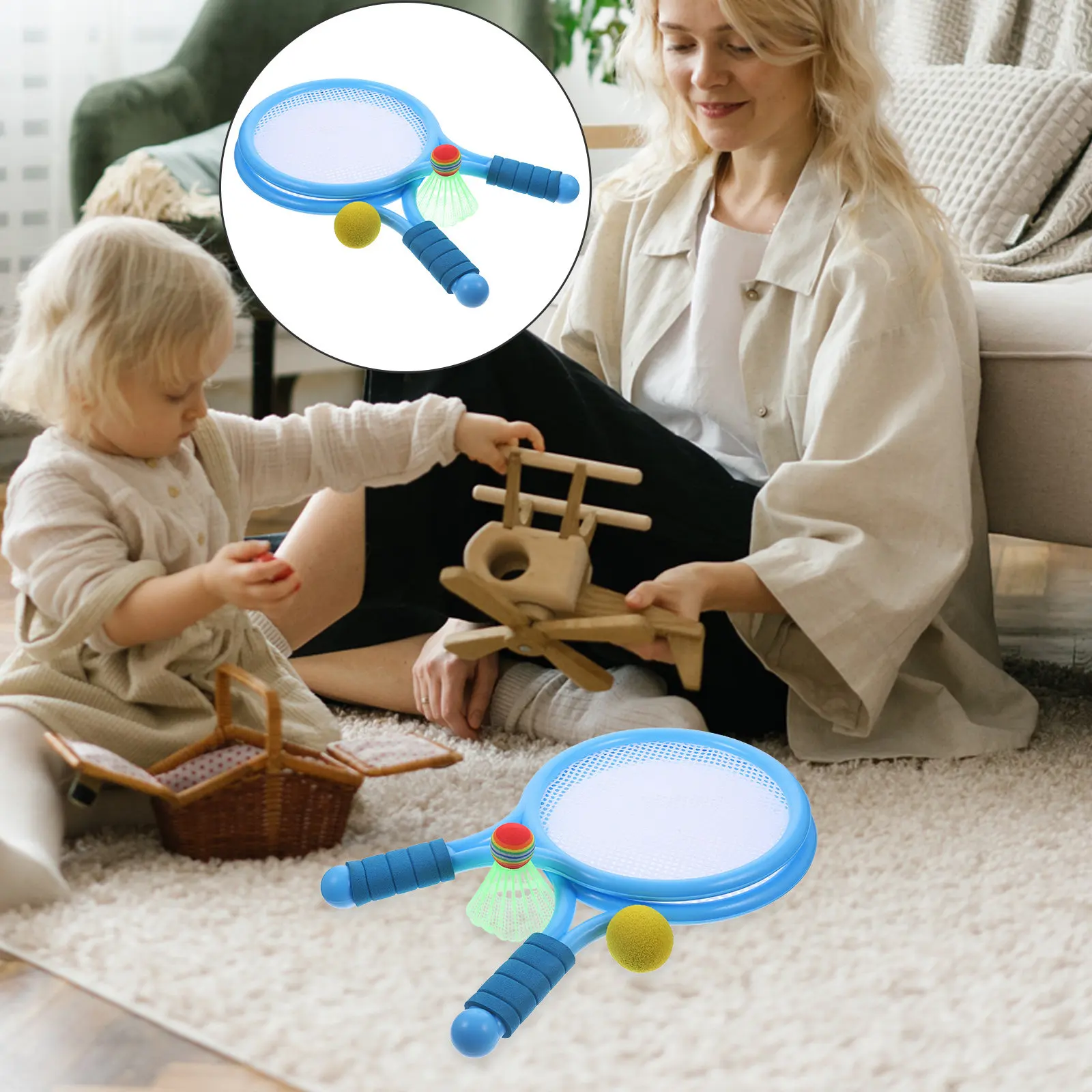 2Pcs Tennis Rackets Set Lightweight Short Handle Large Net Blue for Early Learning Parent Outdoor Play