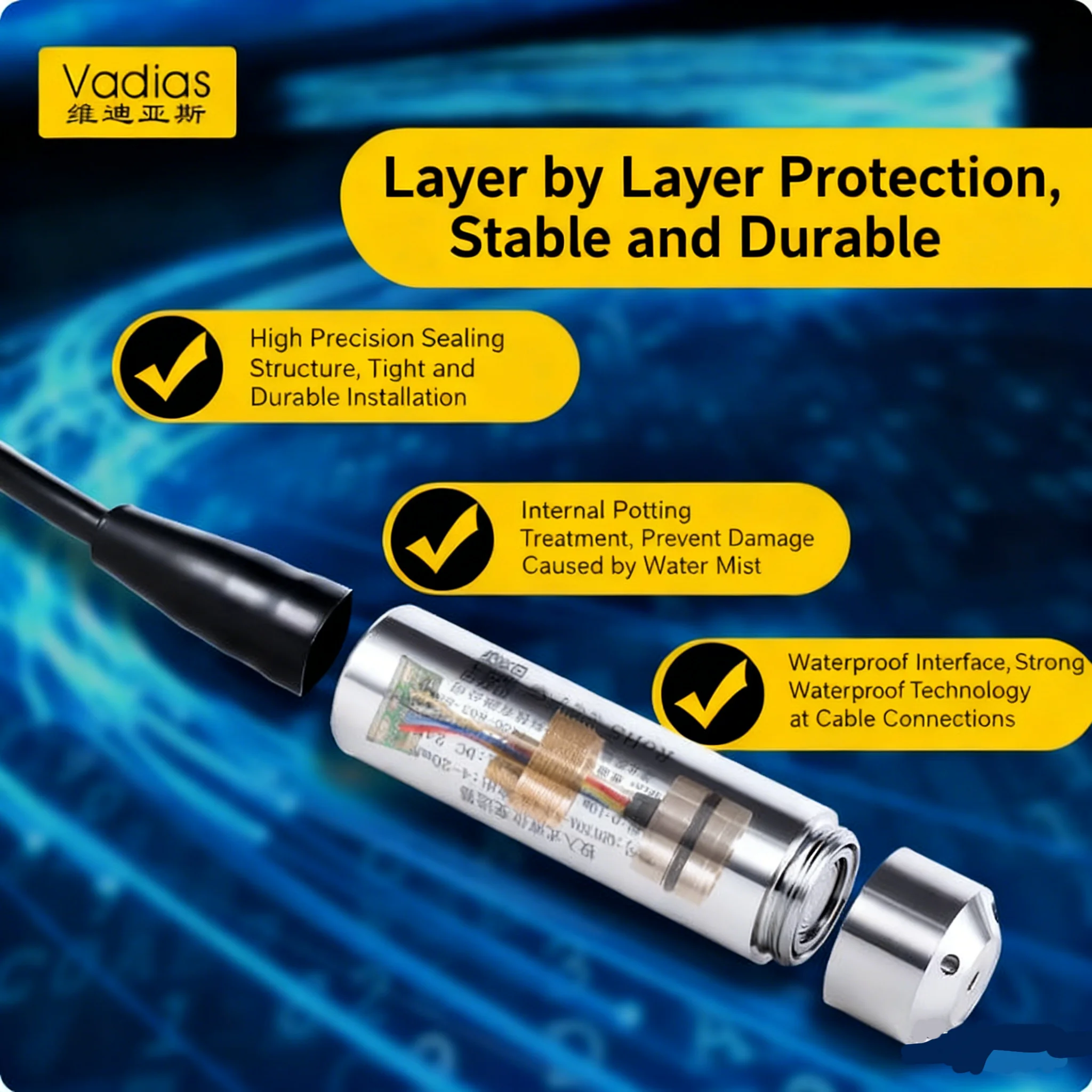 2m/5m/10m Liquid Level Sensor 4-20mA 0-10V 0-5V RS485 Water Level Transmitter 4-20mA Liquid Level Transmitter