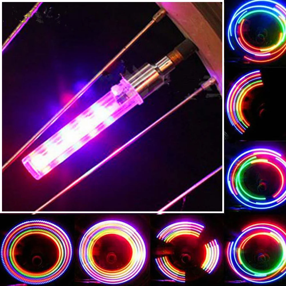 2pcs Bike Valves Light 5 LEDs 7 Modes Adjustables LED Bike Wheel Lamp LED Bike Wheel Spokes Light Wheel Lamp For Night Riding