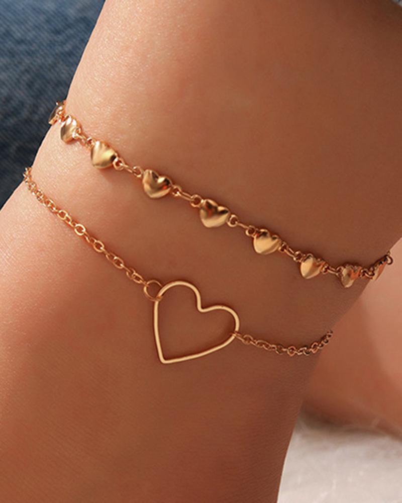 2pcs Heart Stackable Beach Chain Anklets Set, Gold