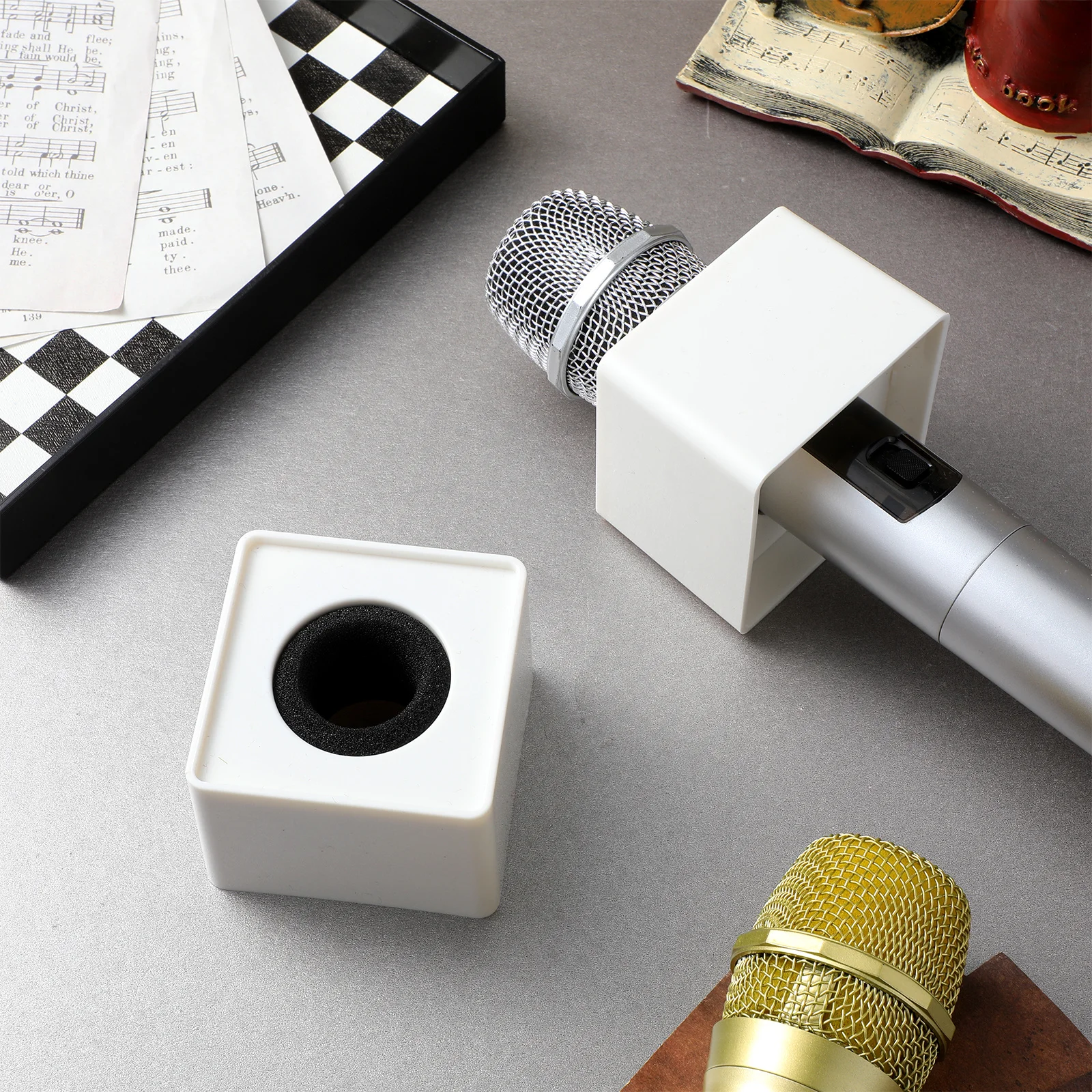 2pcs Microphone Station Abs Triangular Design Portable For Interview Broadcast Custom Pvc Sticker Compatible Most R Microphone