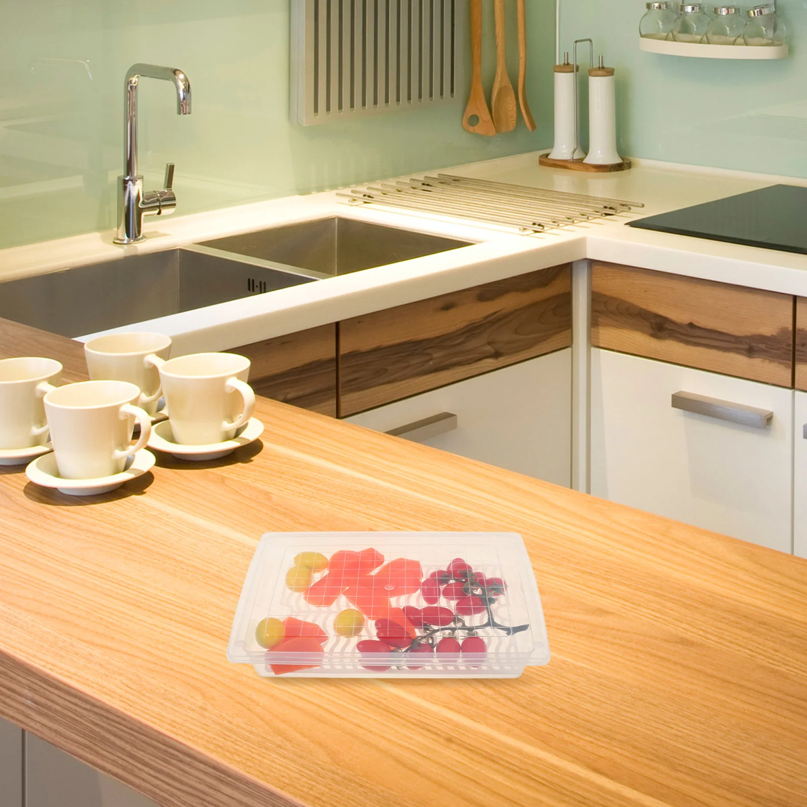 2pcs Rectangular Refrigerator Storage Box Transparent Food Containers With Drain Plate Lid Freezer Safe For Fruits Vegetables