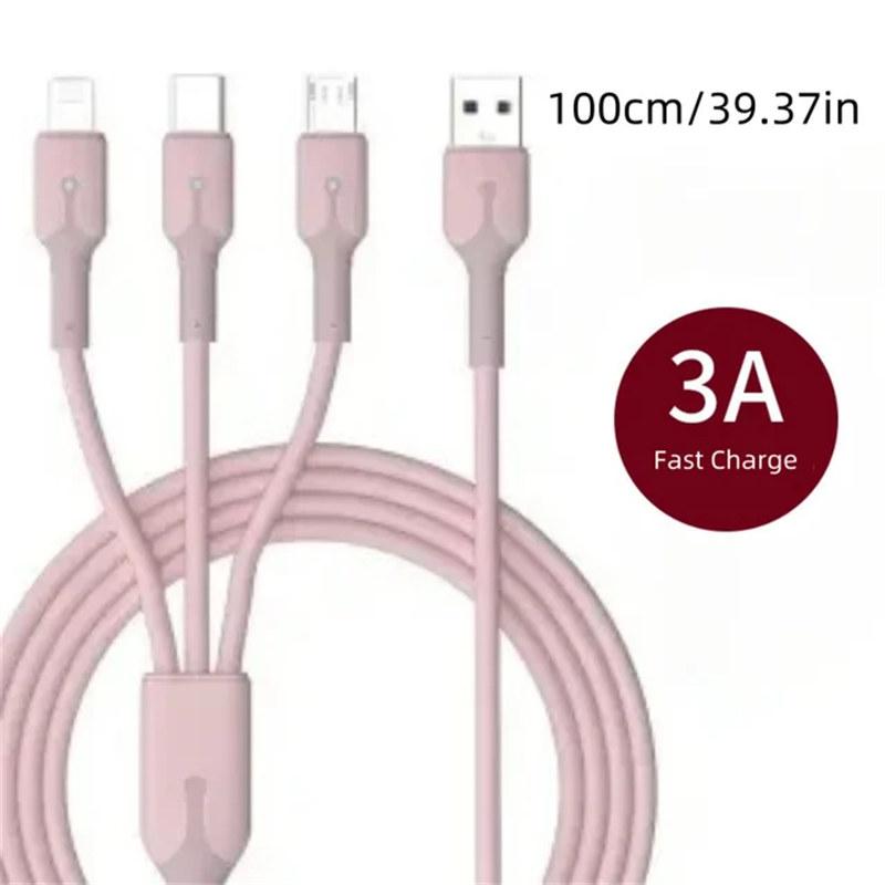3 в 1 кабель типа C USB-кабель для зарядки телефона многопортовый зарядный шнур для iPhone Huawei Samsung несколько USB-проводов для зарядки 2 M розовый