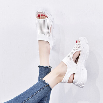 Slipper Knitted Sandals Thick-soled Muffin&Waterproof Platform Leisure Shoes Soft-soled Comfortable Fairy Shoes in Summer