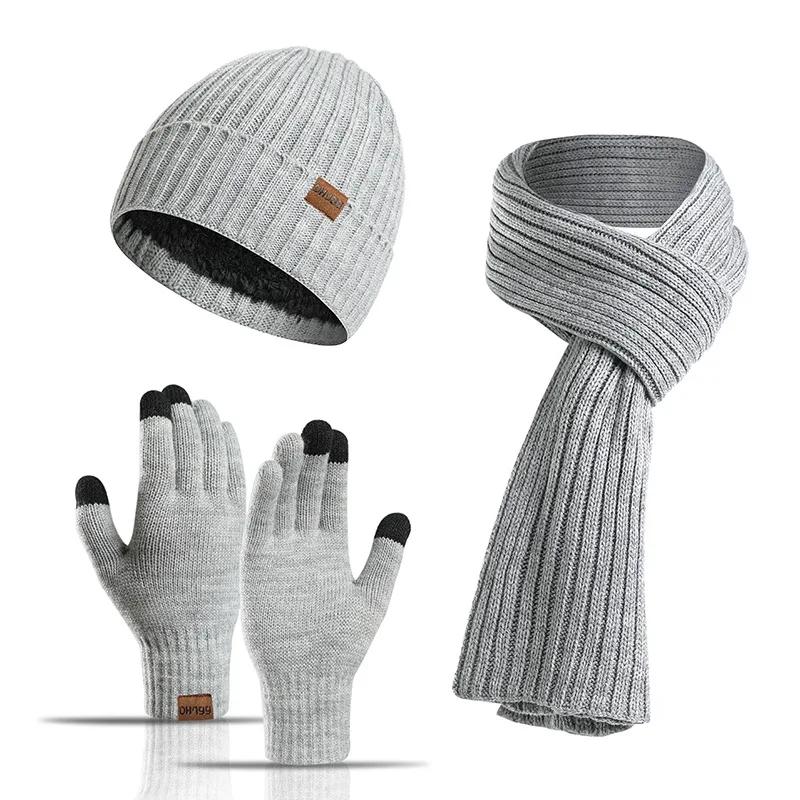 3 в 1 перчатки шарф шапка комплект мужской зимняя теплая вязаная шапка для мужчин сенсорные перчатки для женщин термо шарф полная защита шеи