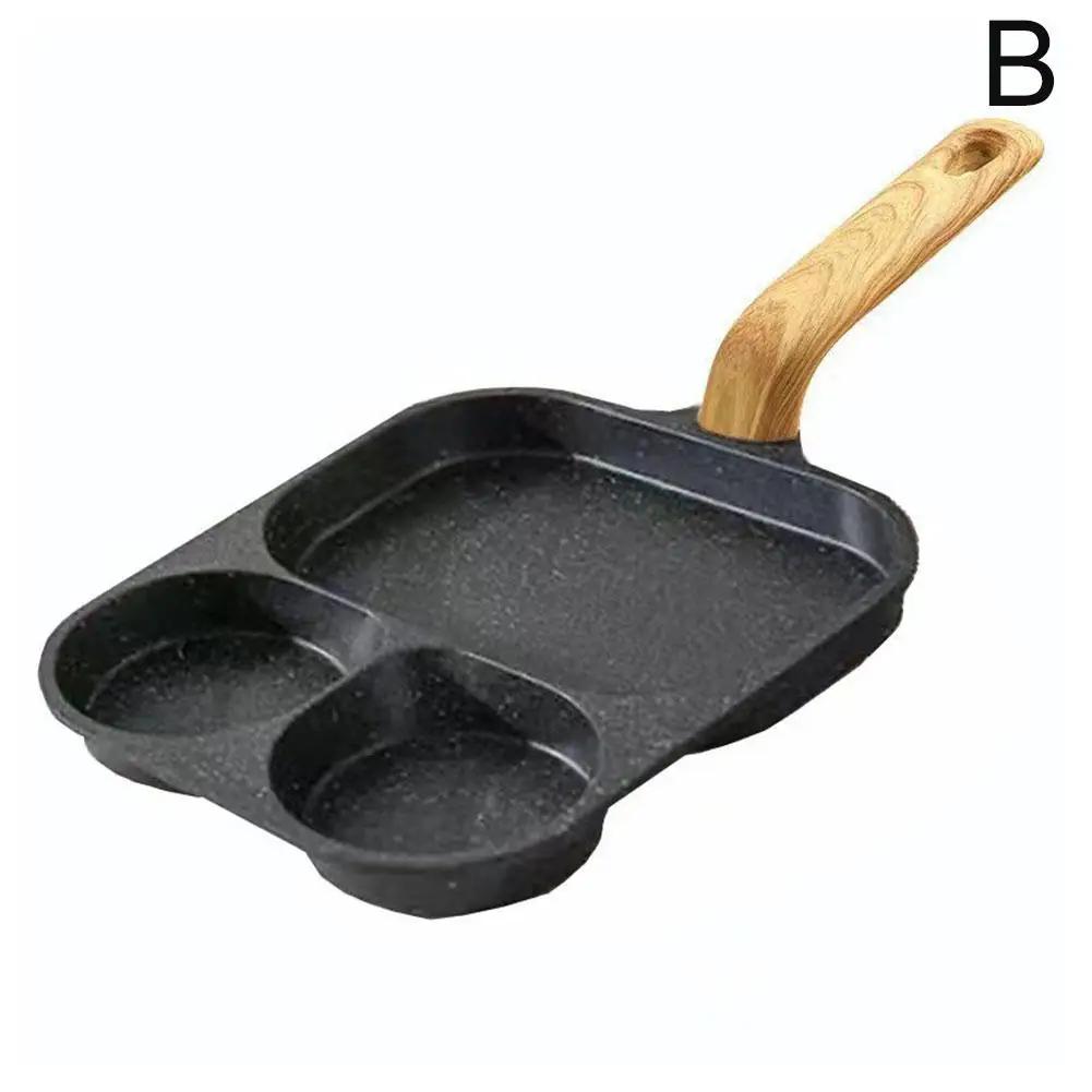 3-в-1 сковорода для домашнего завтрака, алюминиевая, с одним дном, для яиц, многоцелевая, антипригарная, для котлет, бургеров, стейков, жареная K1q7 чёрный