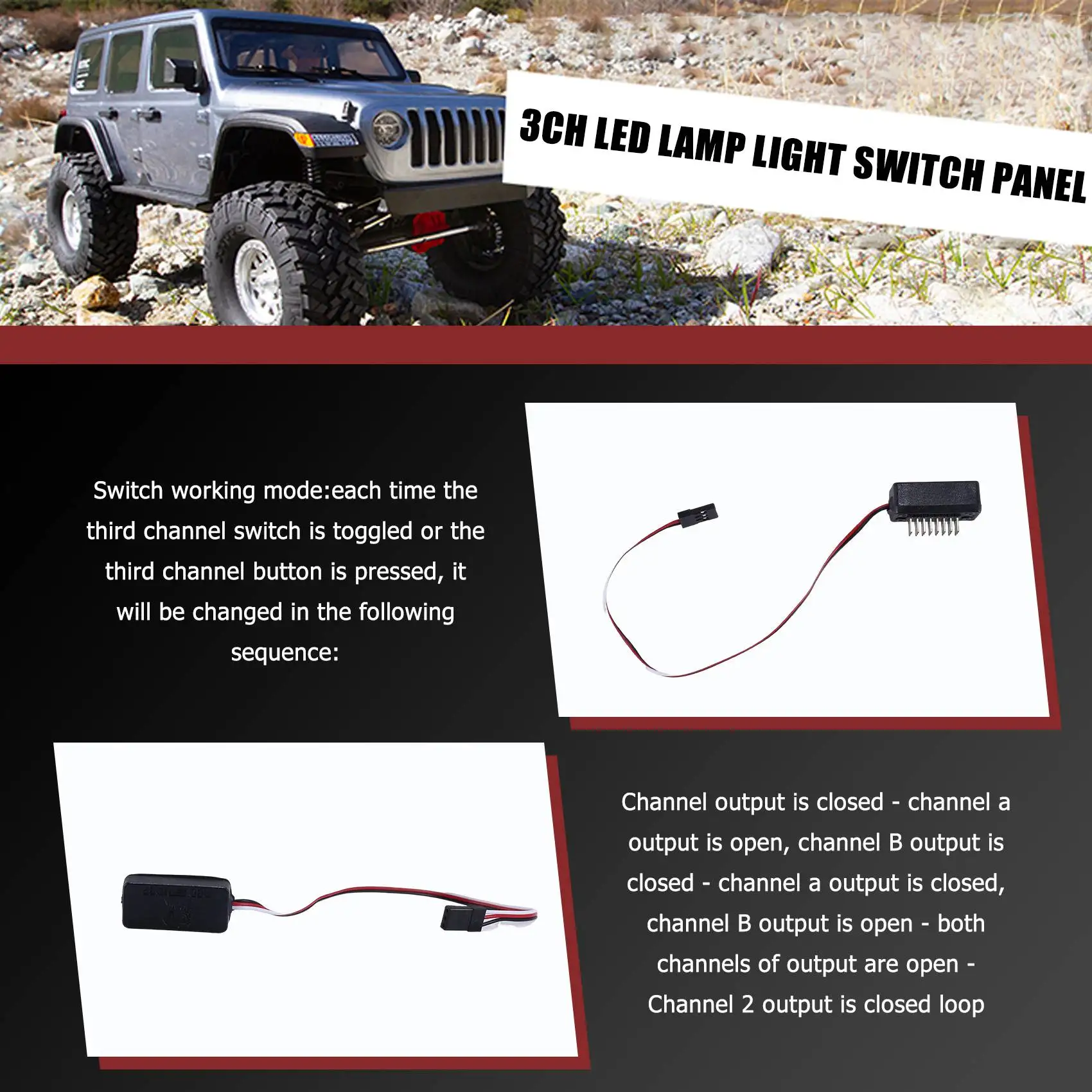 3-канальный Радиоуправляемый автомобиль с 1 на 8, модель CH3, тройная лампа, фотопанель, система переключения для радиоуправляемой модели автомобиля Axial SCX10 Traxxas TRX4 HSP TAMIYA