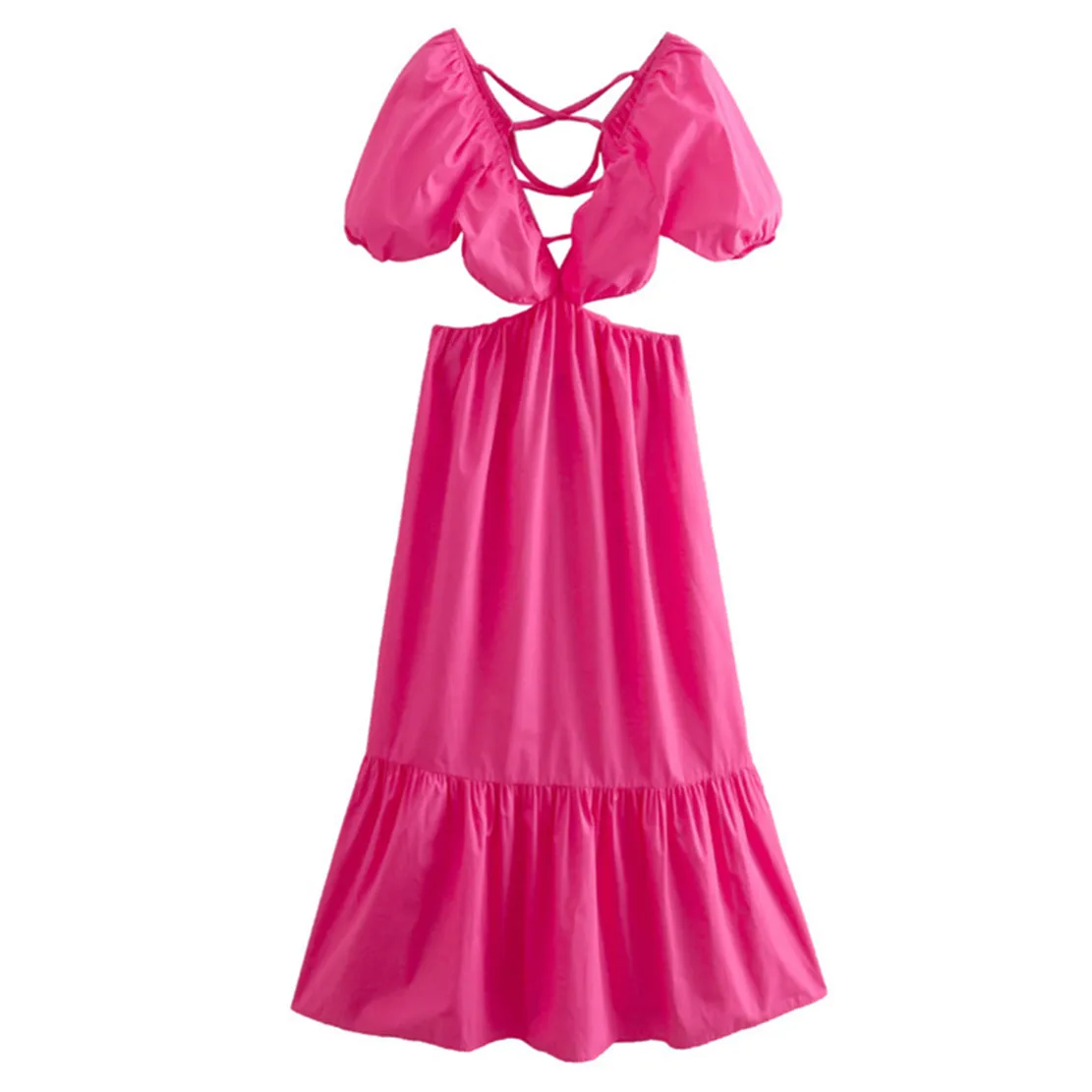 Women Dresses Solid Color Short Sleeve Slim Office Work O-Neck Casual Party Split Maxi Dress Vestido De Mujer