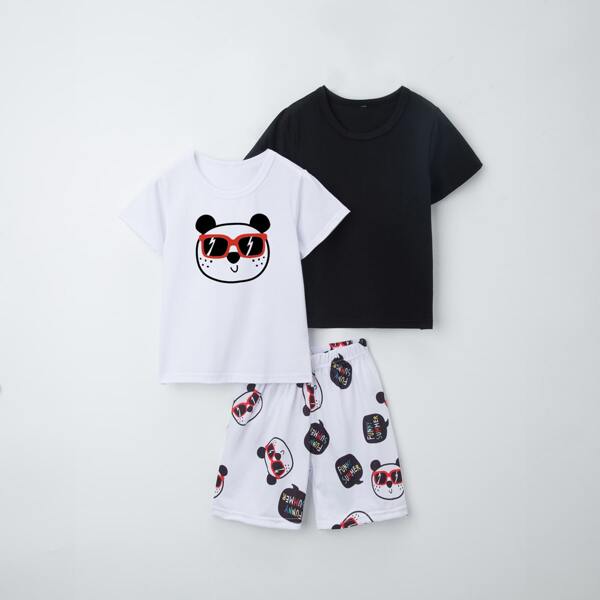 3 пакета пижама с мультипликационным принтом для мальчиков, Черный и белый