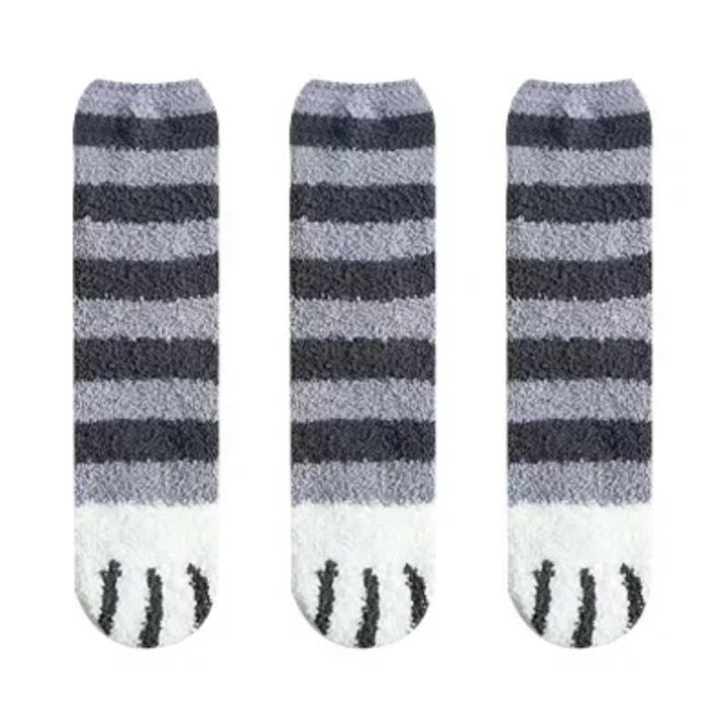 3 пары женских носков с полосками в виде кошачьих лапок, кавайные забавные толстые носки для девочек с изображением мультяшных животных, носки с пальцами, носками, зеброй, тигром, кошачьими лапками One Size