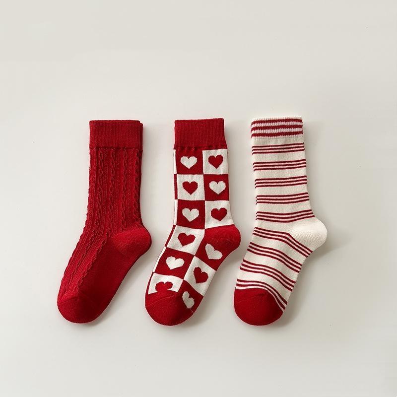 3 пары/набор Детские носки Хлопок Любовь Полоска Принт Носки Новорожденная Девочка Мальчик Детские носки Младенцы для Детей Весна Осень XL(9-12y) красный