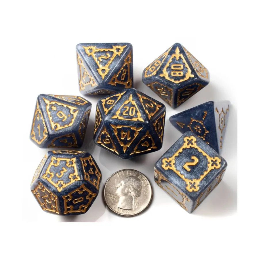 Набор полиэстера, 30 мм — «Полночная цитадель», темно-синий с золотом (7), Dice & Supplies (Unidentifiable Publisher)