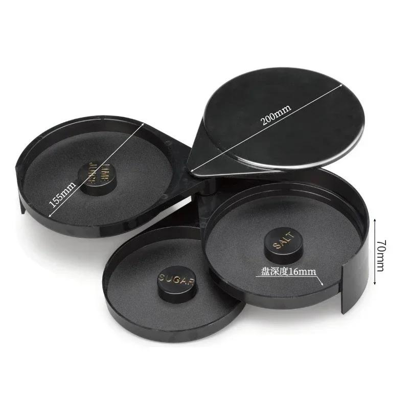 3-слойная вращающаяся коробка для солевой кромки, инструмент для кромки сока лайма, барный винный аксессуар, коробка для соли и сахара для смешивания коктейлей, кейс для бармена чёрный