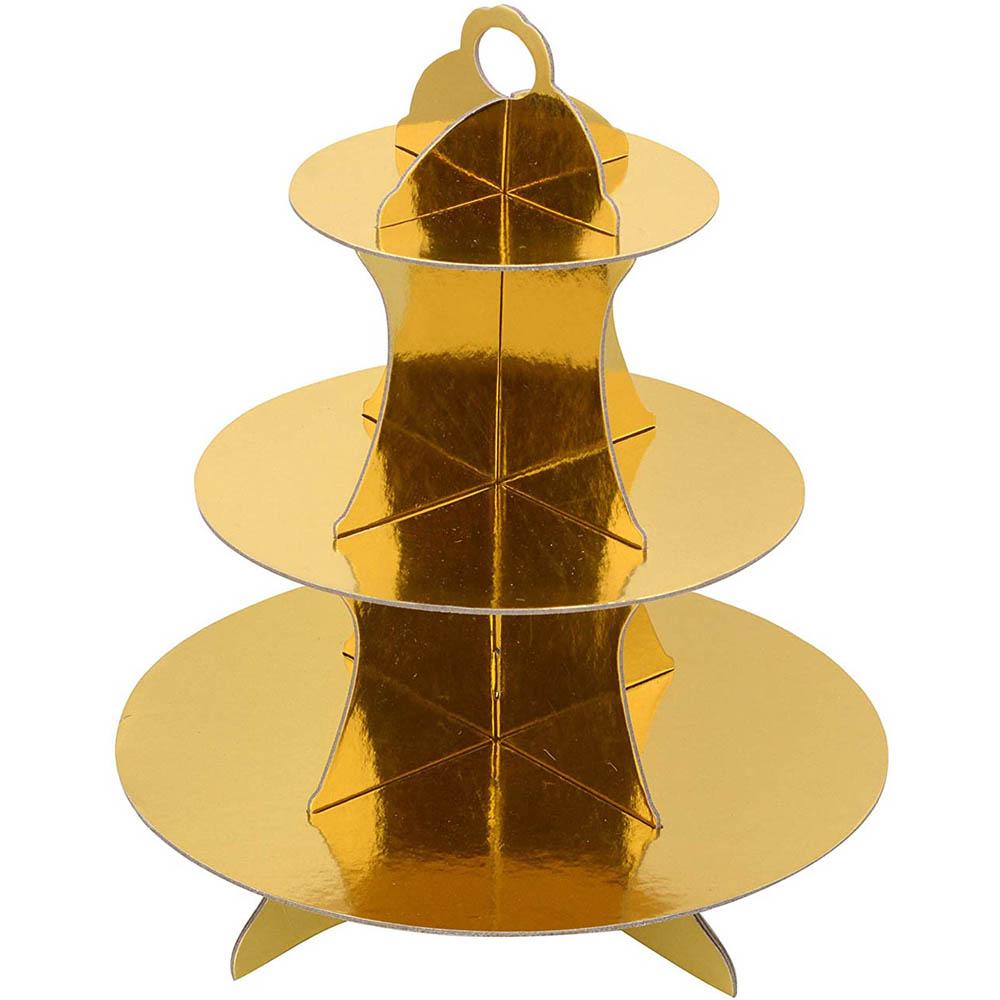 3-слойная одноразовая картонная золотая подставка для торта, столовая посуда, башня, поднос для свадьбы, дня рождения, вечеринки, украшения золотой