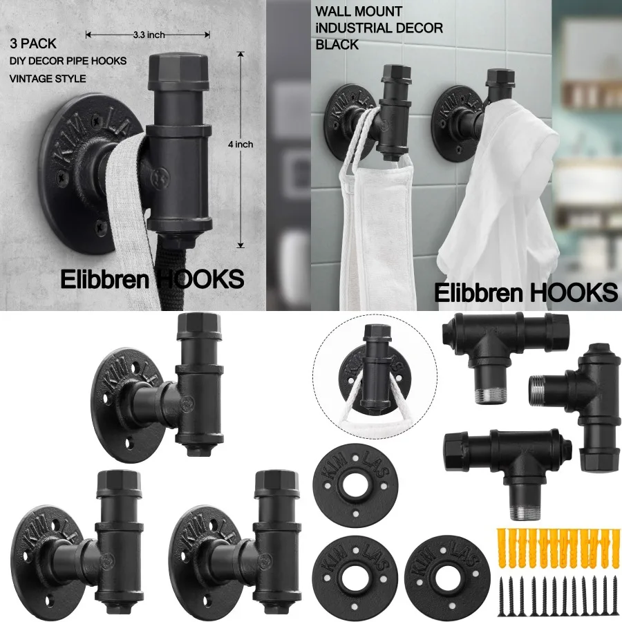 3 упаковки в деревенском стиле, промышленная железная труба, держатель для полотенец, настенный крючок для подвешивания, настенная винтажная вешалка для халата, тяжелая