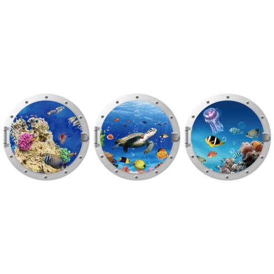 3 шт. Наклейки на стену Прозрачные с принтом морских животных Самоклеящиеся Водонепроницаемые Отличная липкость Противоскользящие Украшение стен для спальни B