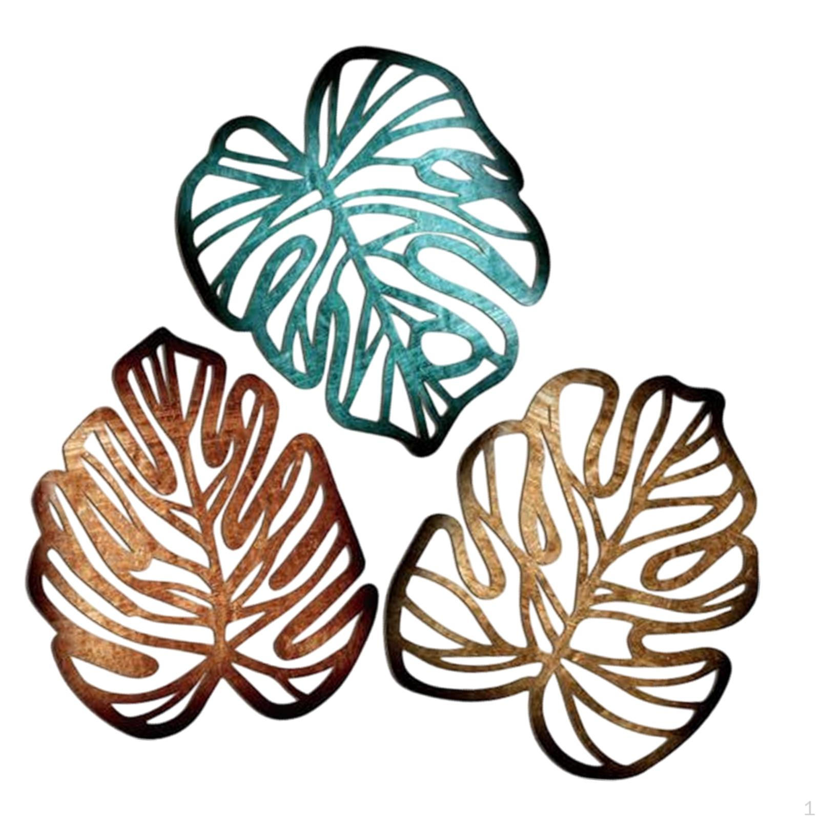 3 шт. Пальмовые листья Деревянное искусство для гостиной и сада Blue and Brown