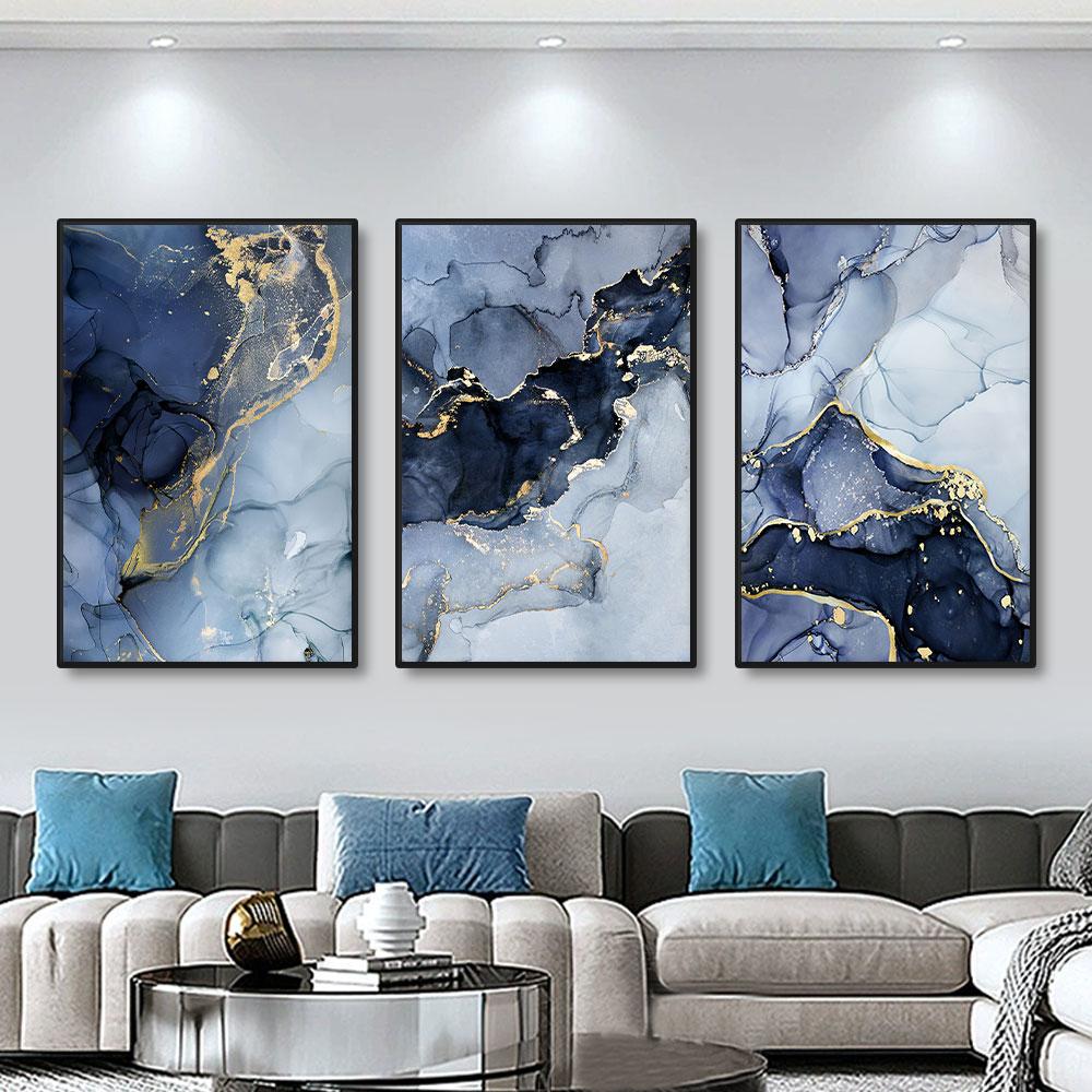 3 шт. Современные золотые синие мраморные настенные постеры Абстрактная печать на холсте Картины Картинки Интерьер гостиной Домашнее украшение 20x30cm No Frame