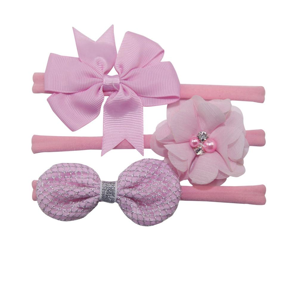 3 шт. детская эластичная повязка на голову с цветочным принтом и жемчугом для девочек, комплект повязок для волос с бантом для малышек розовый