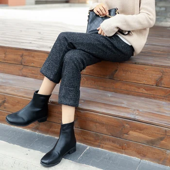 boots 2021 ladies patent leather knee high cross tied comfortable low heel autumn winter fashion round toe women's shoes, Black
