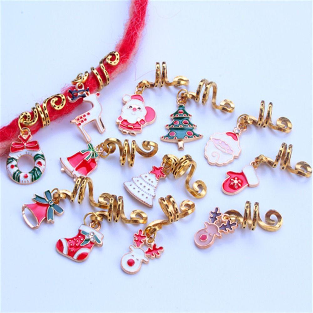 3 шт. золотого цвета Рождественское кольцо для волос Санта-Клаус косы для волос трубки милые дреды из бисера 2