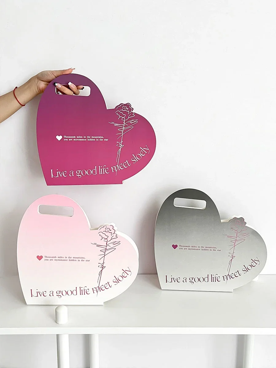 3 шт., карманная коробка с градиентом в форме сердца для иллюстрации цветов, портативная коробка в форме сердца, Подарочная коробка для цветов на День святого Валентина
