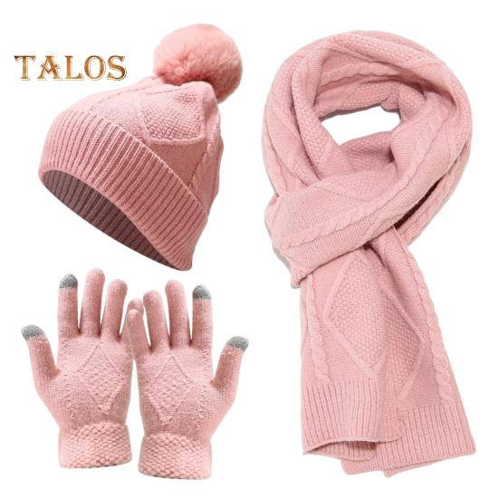 3 шт./комплект, мужская зимняя шапка, шарф, перчатки, комплект, толстая трикотажная теплая эластичная защита ушей, пять пальцев, ветрозащитная зимняя велосипедная шапка, основа для шеи розовый