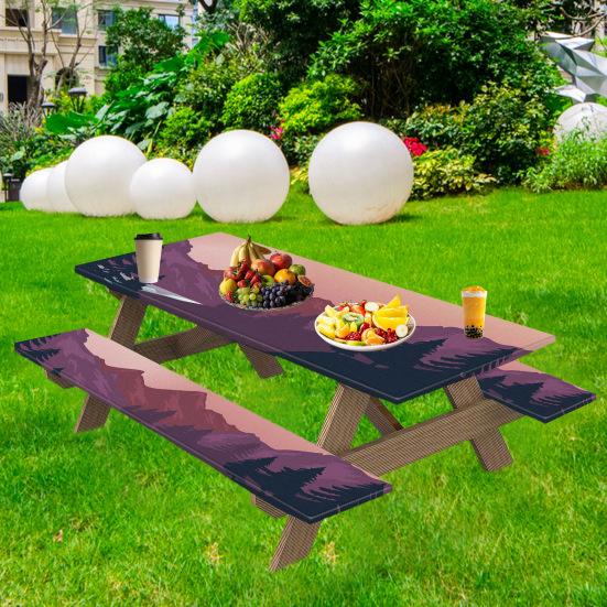 3 шт./комплект чехлов для уличного стола и стульев с принтом в виде гор, водонепроницаемые с противоскользящей эластичной лентой, грязеотталкивающие чехлы для стола для кемпинга, скамейки для пикника F