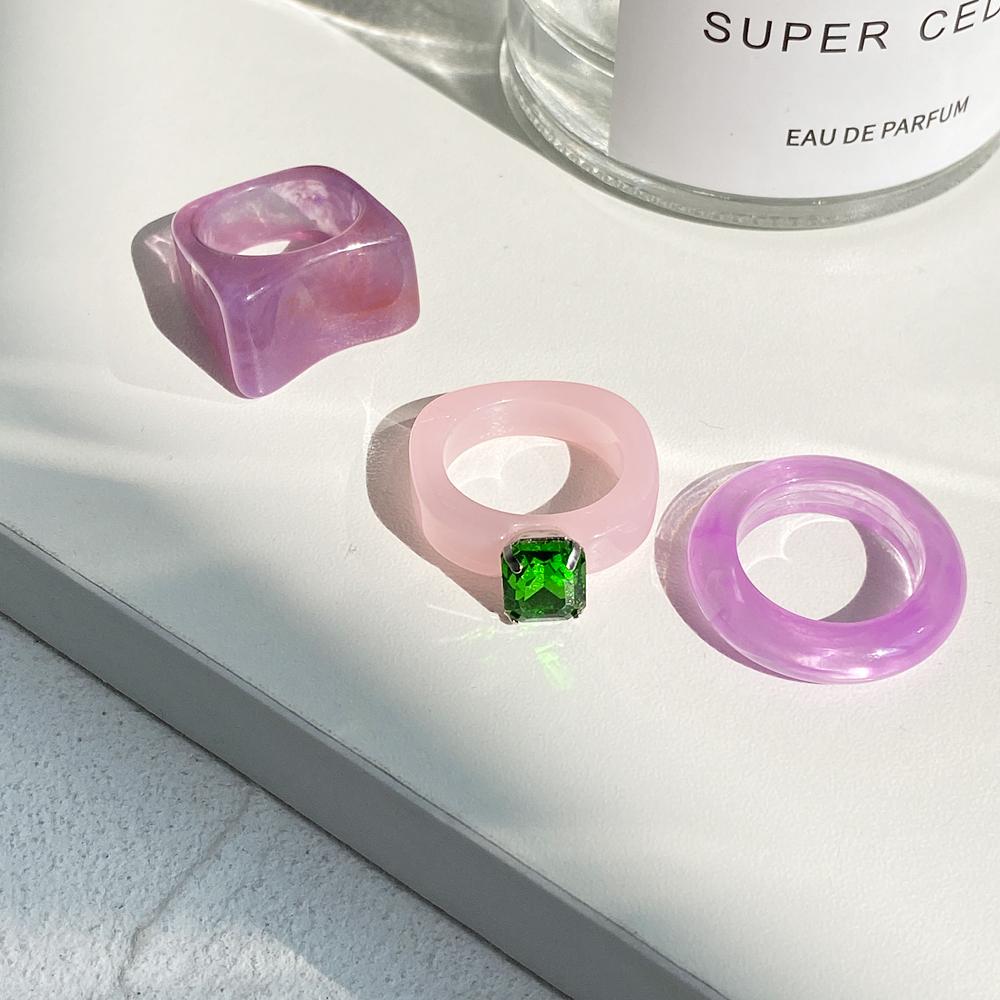 3 шт./компл., креативное прозрачное кольцо из смолы неправильной формы, красочное акриловое кольцо с ореолом, женские ювелирные изделия, аксессуары, подарок 2