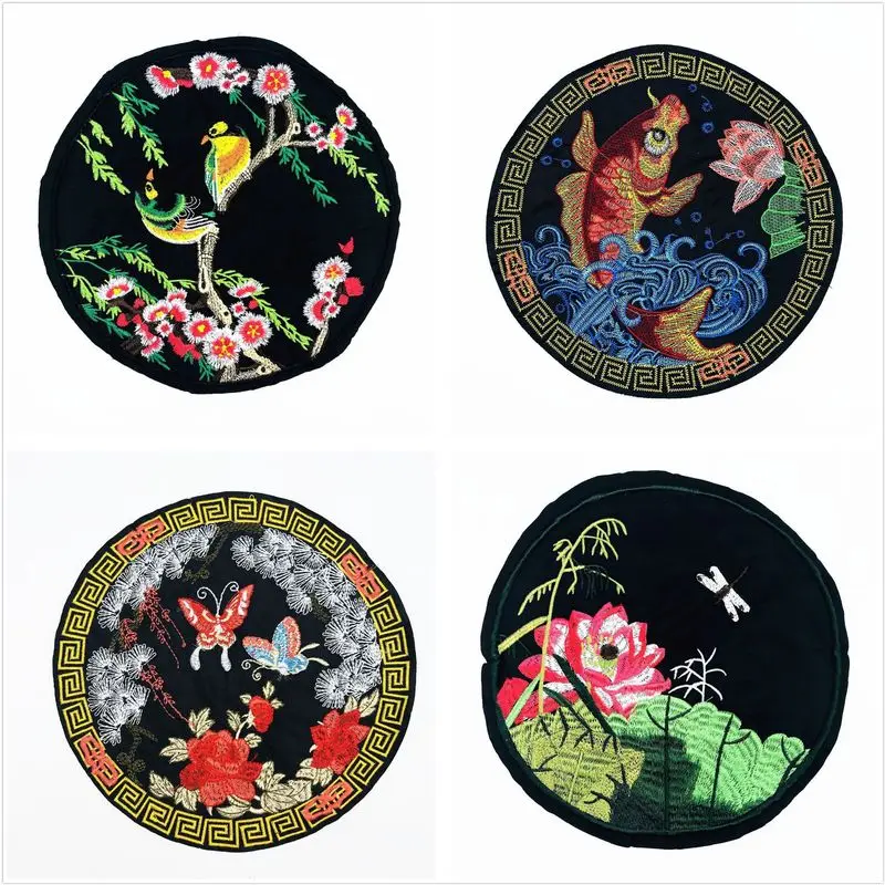 3 шт./лот большая круглая вышивка в китайском стиле, цветок, птица, рыба, украшение для одежды, аппликация, сделай сам, милые Швейные аксессуар...