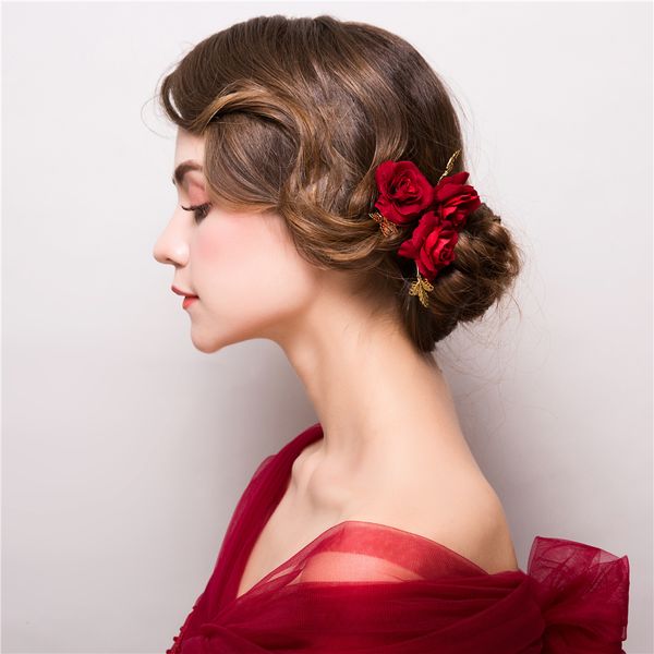 3 шт. / лот роза цветок заколки красный цветочный модный U форма палочки для волос с