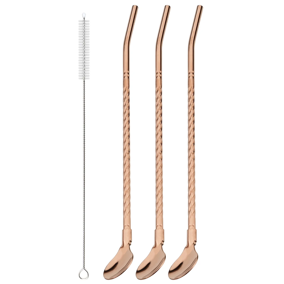 3 шт., многоразовый набор соломенных ложек 2-в-1, роза, соломинка для питья из нержавеющей стали, сок, молочные коктейли, кофейная соломинка, аксессуары для бара