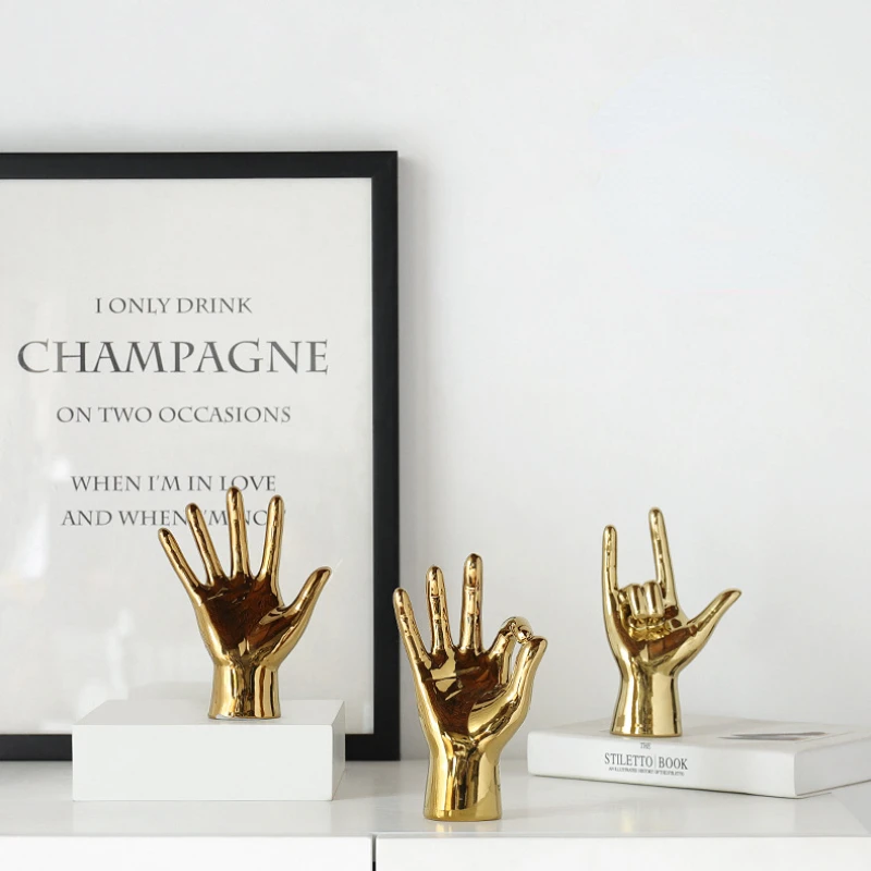 Simple Electroplating Ornaments Palm Gesture Living Room Bedroom TV Cabinet Bookcase Bedroom Decoration Resin Crafts Home Decor