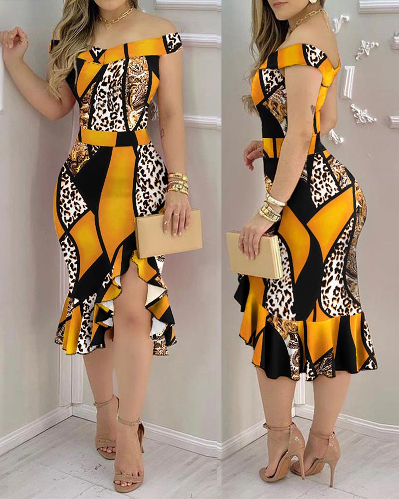 Summer retro floral vintage slash neck strapless ruffled puff sleeve pleated slim shirt