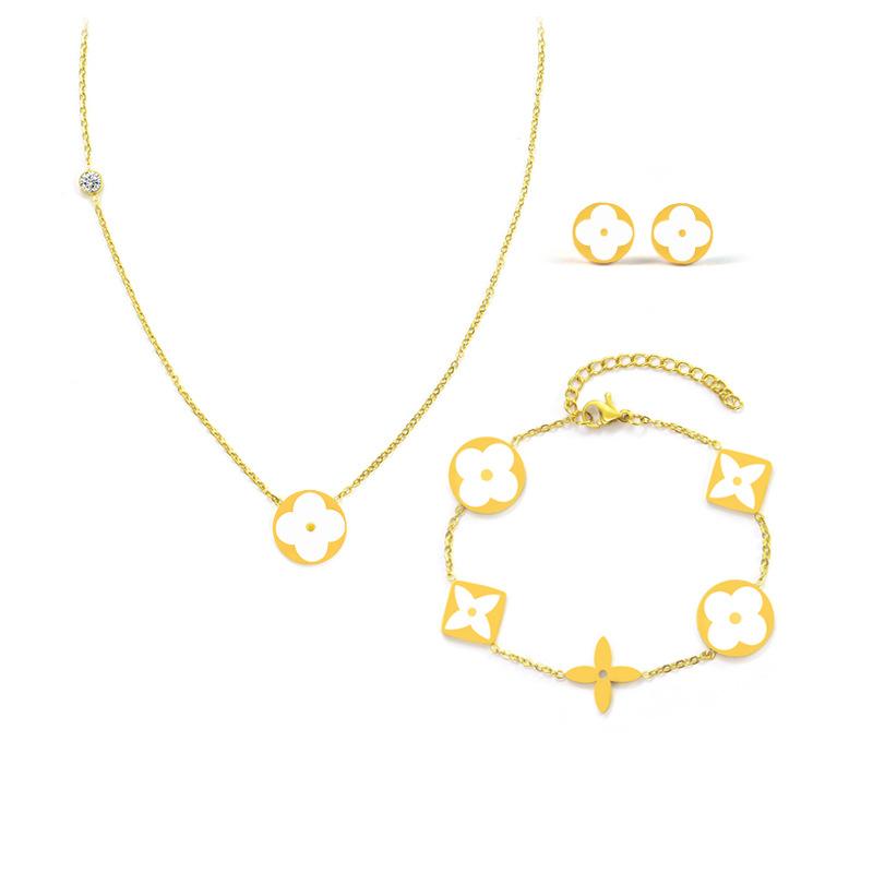 3 шт. ожерелье, серьги, браслеты из титановой стали с четырьмя листьями травы, минималистское сочетание с сохраняющими цвет золотыми гальваническими украшениями белый